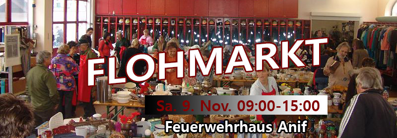 Flohmarkt der Freiwilligen Feuerwehr von Anif im Feuerwehrhaus Anif von 09:00 bis 15:00.