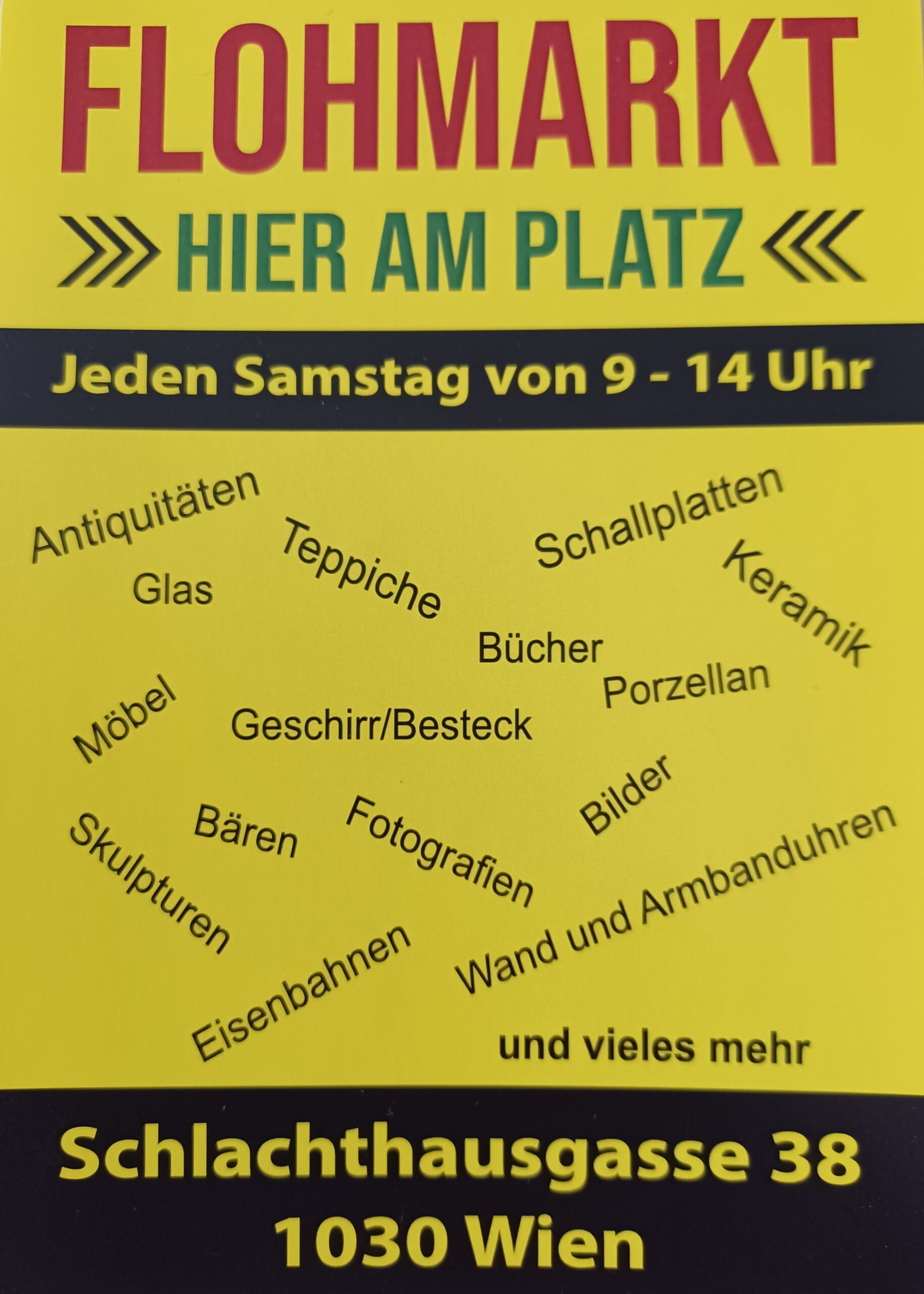 verwandelt sich die Schlachthausgasse 38, 1030 Wien in ein Paradies für Schatzsucher und Sammler. Ob Antiquitäten, Möbel, Schallplatten, Bücher, Keramik, Porzellan, Bilder, Fotografien, Eisenbahnen oder Skulpturen – hier findest du alles, was das Herz begehrt.