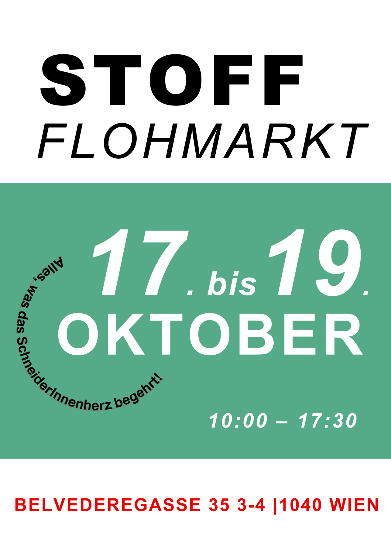 Von 17.-19.Oktober findet wieder der beliebte Wiener Stoff-Flohmarkt statt! Unzählige Stoffe – Baumwolle, Seide, Leinen, Wolle, Jersey, Vintagestoffe, und, und, und – zu fantastischen Preisen!